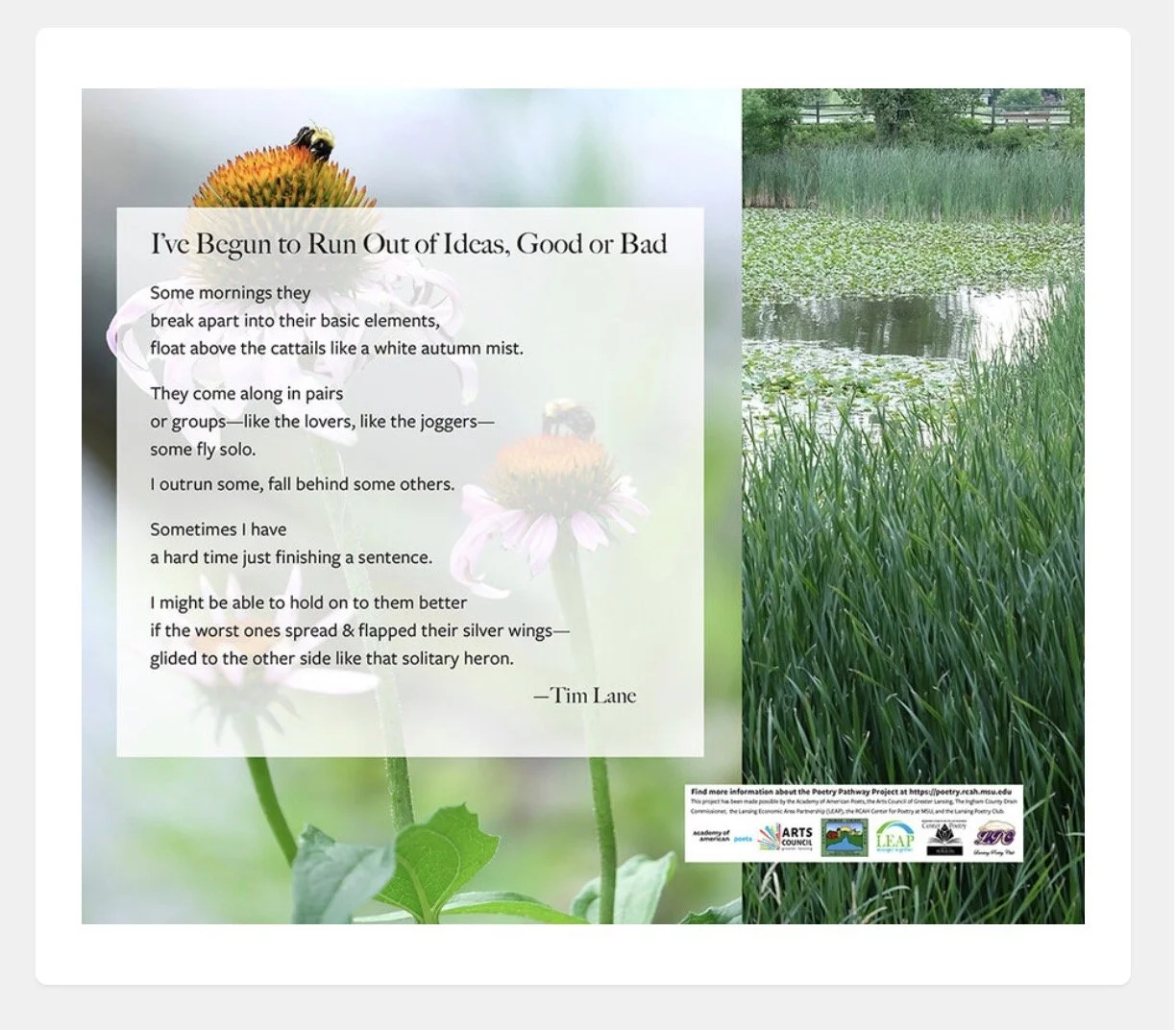 The winners of the Lansing Tollgate pathway poetry contest, We Are Water, have been announced, the celebration reading has been set, and Lawrence Cosentino’s fabulous article came out in the latest City Pulse today. You can check it out here!